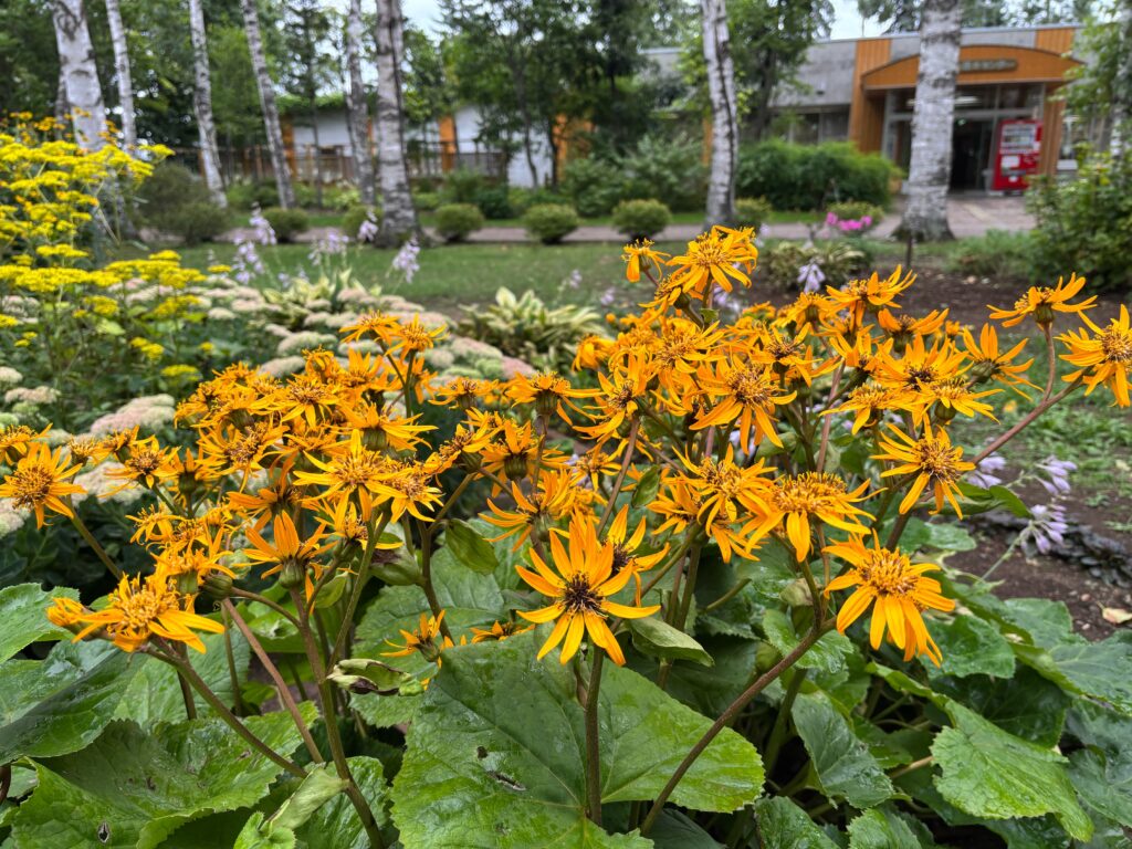 センター周辺のモデルガーデンでは、オミナエシやリグラリア、ルドベキアなどが見頃を迎えています。