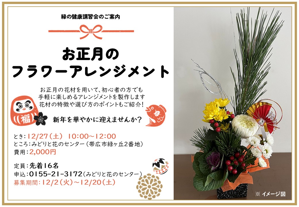 お正月のフラワーアレンジメント講習会を12月27日(土曜日)に開催します!
