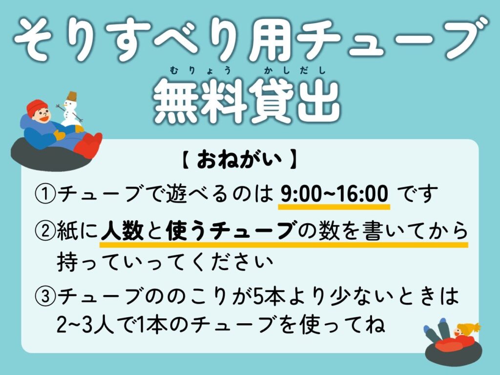 今年も「そりすべり用チューブ」の貸し出しが始まりました!