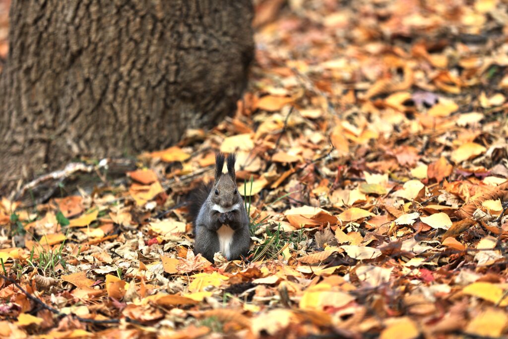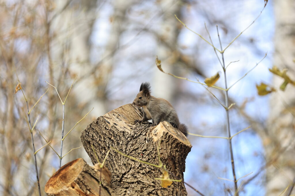エゾリスも耳の毛がゴージャスになってきました。冬毛に衣変え中のようです。