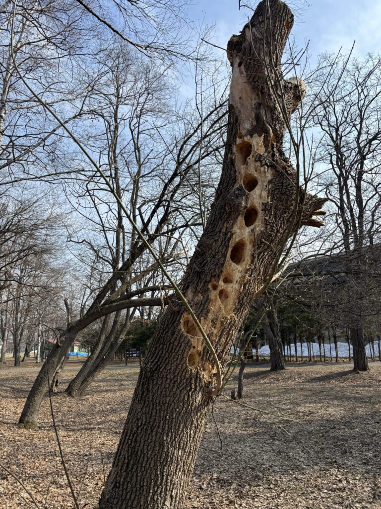 かなり豪快に穴が開けられています…木の中にいる虫たちがご馳走なのでしょうか。